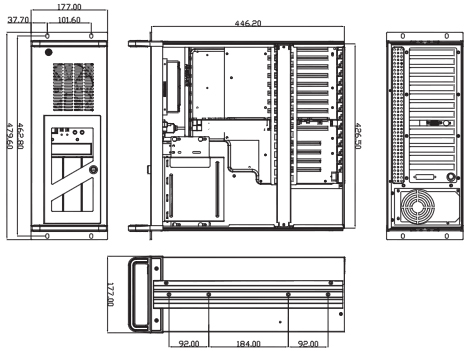 | 482.6 mm (19") (W) x 450 mm (17.7") (D) x 177 mm (7")(H) | |