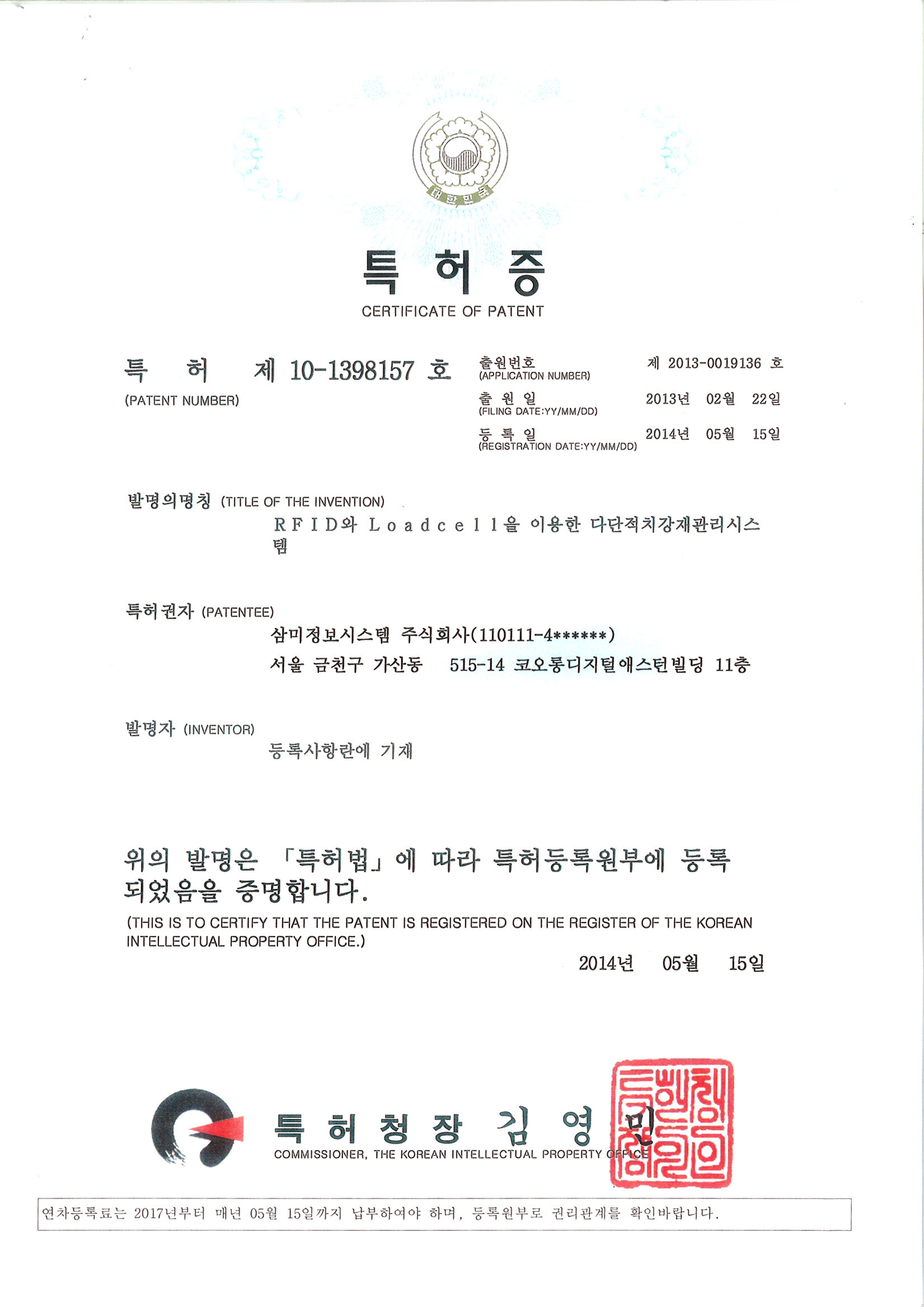 HOME > 제품소개 > H/W > 보유특허 > 특허(4건)