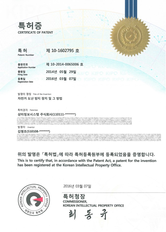 HOME > 제품소개 > H/W > 보유특허 > 특허(4건)